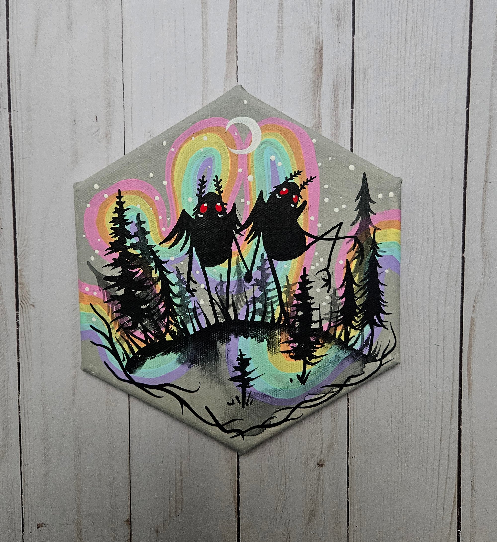 Copy of Rainbow Mothman Couple Original Canvas